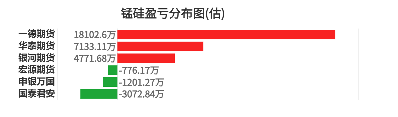 就锰硅而言,今日盈利前三席位为一德期货、华泰期货、银河期货,分别盈利18102.60万元、7133.11万元、4771.68万元。