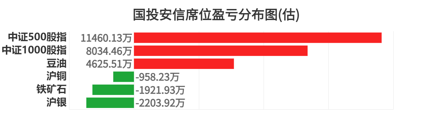 就国投安信席位而言,今日盈利前三品种为中证500股指、中证1000股指、豆油,分别盈利11460.13万元、8034.46万元、4625.51万元。